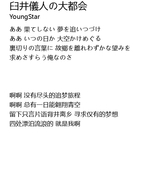 臼井儀人の大都会 Jiu Jing Yi Ren Da Du Hui Lyrics Follow Lyrics